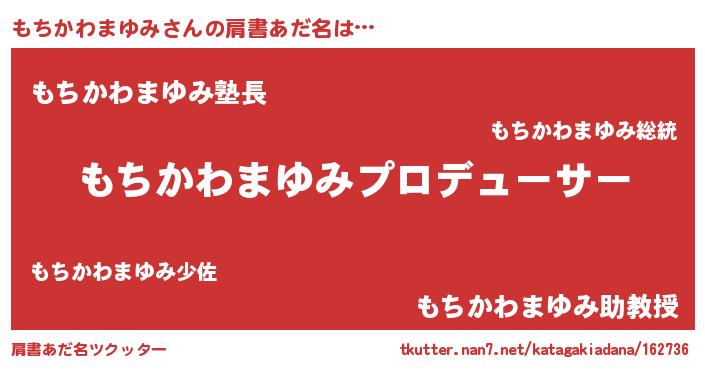 | 意味不明あだ名 | 『とにかく怪しいもちかわまゆみ』 |