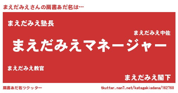 | ポケモン風あだ名 | 『マエゴンZ』『ヒマエダミエ』 |