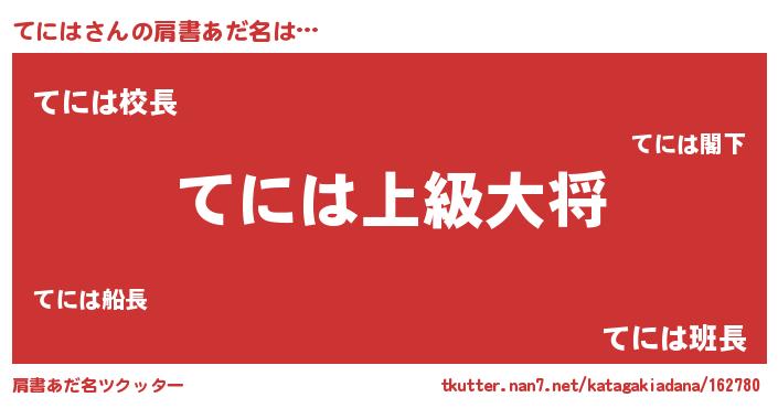 | 意味不明あだ名 | 『なめこ科てには属』『永久保存てには』 |