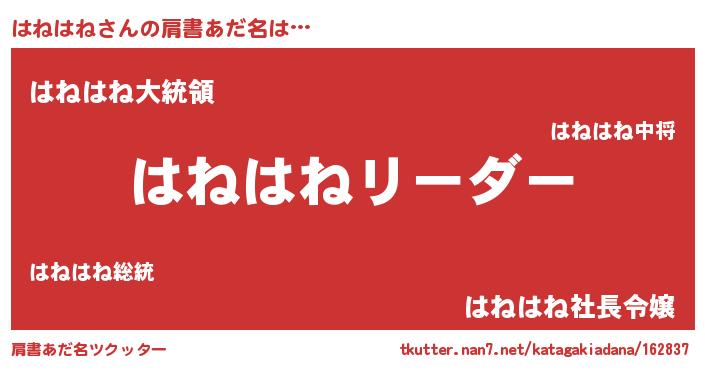 | 意味不明あだ名 | 『とにかく怪しいはねはね』 |