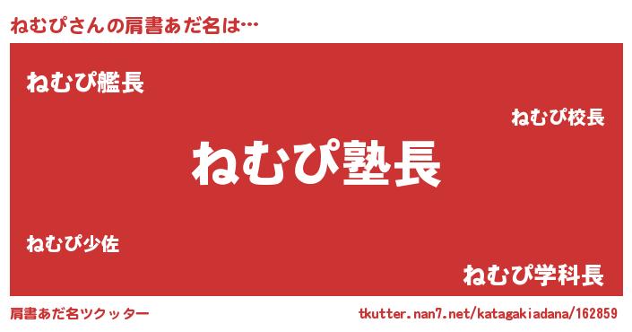 | ヒーロー風カッコイイあだ名 | 『魔戒騎士ネム』『友情の使者ねむぴ』 |