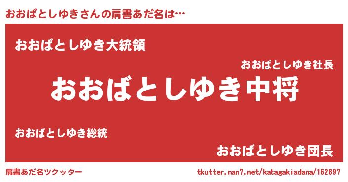 | 女子向けラノベタイトル風あだ名 | 『おおばとしゆきの玉の輿計画!』 |