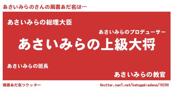 | 男性向けラノベタイトル風あだ名 | 『転生したらあさいみらのだった件』 |