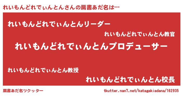 | 男性向けラノベタイトル風あだ名 | 『れいもんどれでぃんとんに滅ぼされるだけの簡単なお仕事です』 |