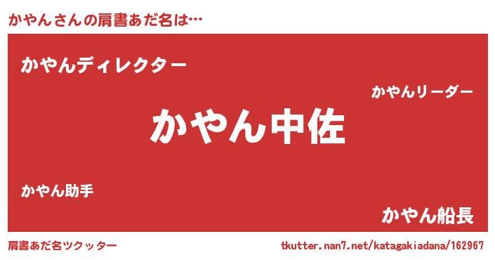 | ヘコむあだ名 | 『かやを』『つくし』『かやにー』 |