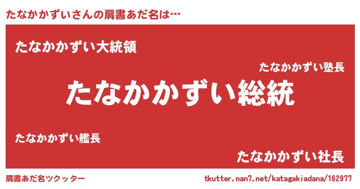 | ヒーロー風カッコイイあだ名 | 『最強戦士タナカカズイ』『暗黒騎士タナ』 |