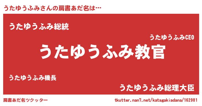 | ヒーロー風カッコイイあだ名 | 『仮面ウタダー』『究極戦士ウタユウフミ』 |