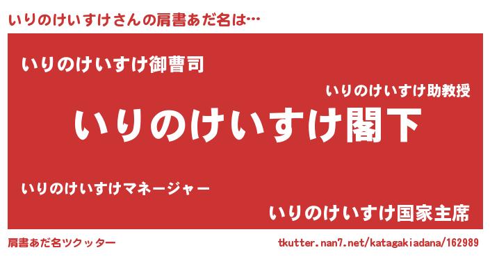 | 意味不明あだ名 | 『自称いりのけいすけ』 |