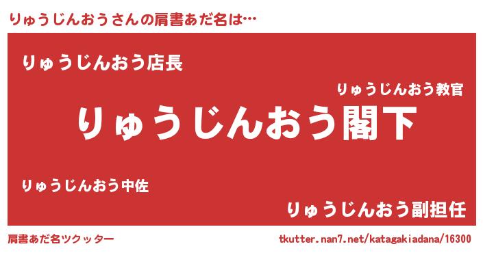 | 男性向けラノベタイトル風あだ名 | 『Re:りゅうじんおうから始める異世界生活』 |