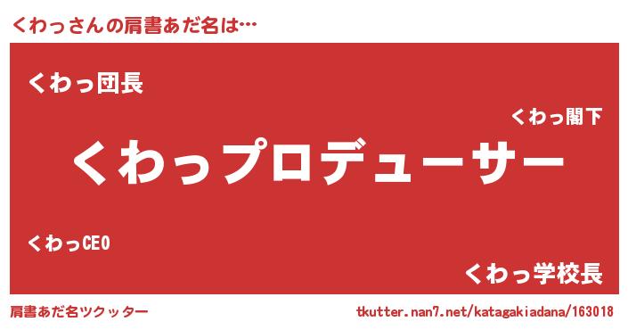 | 可愛いあだ名 | 『くっわぃー』『くわちゅっちゅ』 |
