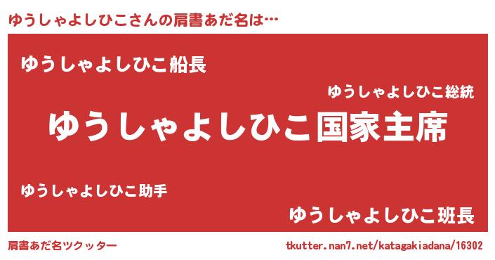 | 男性向けラノベタイトル風あだ名 | 『やはりゆうしゃよしひこの青春ラブコメはまちがっている 』 |