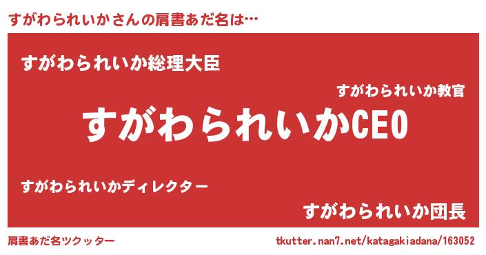 | 胡散臭い通販商品みたいなあだ名 | 『必ず成功するブレスレット…その名も「すがわられいか」』 |