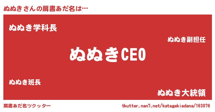 | 男性向けラノベタイトル風あだ名 | 『ぬぬきの憂鬱』 |