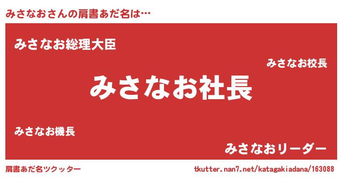 | 欧米人風あだ名 | 『マイケルみさなお』『ウサインみさなお』 |