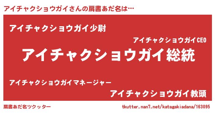 | 意味不明あだ名 | 『自称アイチャクショウガイ』 |