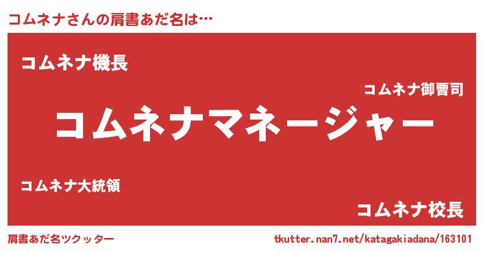 | ヒーロー風カッコイイあだ名 | 『ネオコムネナ』『スーパーコムネナ』 |