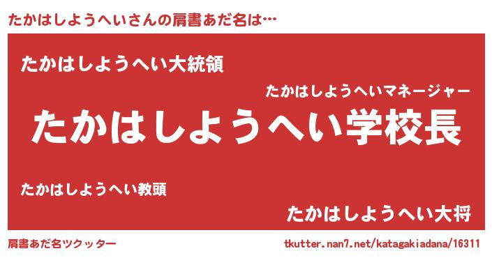| 男性向けラノベタイトル風あだ名 | 『おまえをオタクにしてやるから、俺をたかはしようへいにしてくれ! 』 |