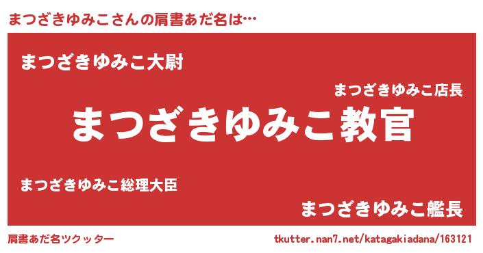 | 男性向けラノベタイトル風あだ名 | 『この素晴らしい世界にまつざきゆみこを!』 |