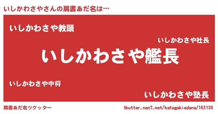 | ヒーロー風カッコイイあだ名 | 『ネオイシカワサヤ』『幻影騎士イシ』 |