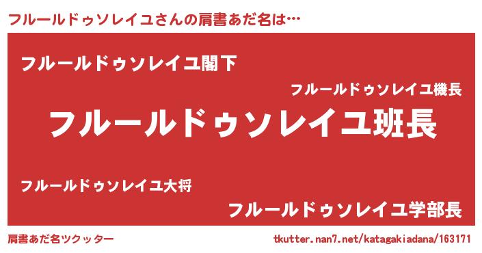 | 意味不明あだ名 | 『とにかく怪しいフルールドゥソレイユ』 |