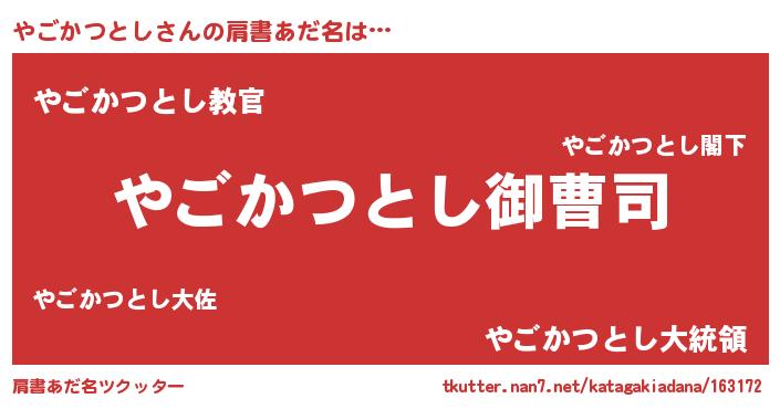 | 女子向けラノベタイトル風あだ名 | 『やごかつとし姫と円卓の騎士』 |