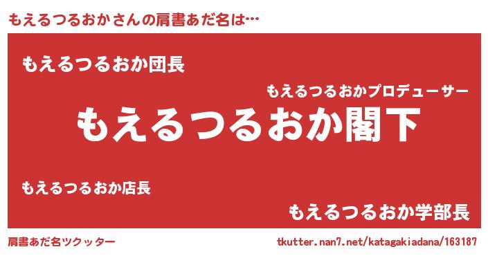 | 意味不明あだ名 | 『自称もえるつるおか』 |