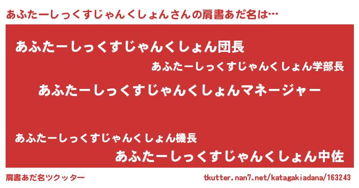 | ヒーロー風カッコイイあだ名 | 『天弓騎士アフ』『仮面アフダー』 |