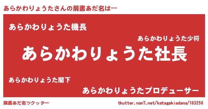 | 女子向けラノベタイトル風あだ名 | 『あらかわりょうた姫と円卓の騎士』 |