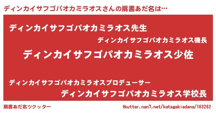 | 欧米人風あだ名 | 『トリンドルディンカイサフゴパオカミラオス』 |