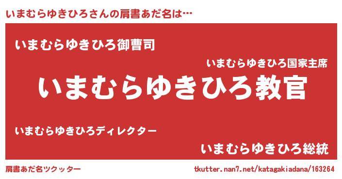 | 意味不明あだ名 | 『住所不定無職いまむらゆきひろ(39歳)』 |