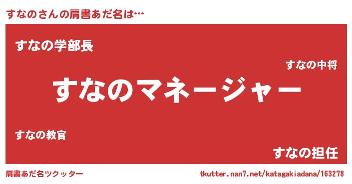 | 欧米人風あだ名 | 『アンジェラ・すなの』『ダニエルすなの』 |