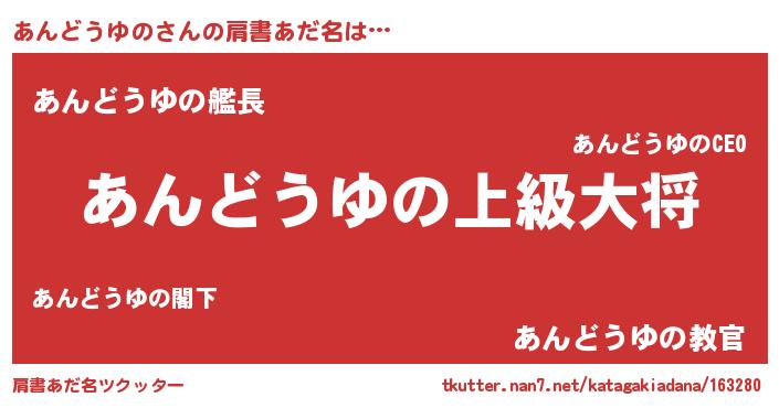 | 胡散臭い通販商品みたいなあだ名 | 『あなたにだけ特別に提供する世界で10本だけ現存している希少なブランデー…その名も「あんどうゆの」』 |