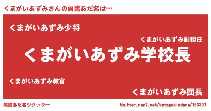 | ヘコむあだ名 | 『くまっぺ』『くまがいあずみ(苦笑)』 |