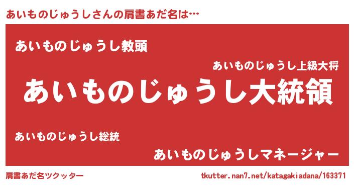 | 女子向けラノベタイトル風あだ名 | 『あいものじゅうしの雑貨屋さん』 |