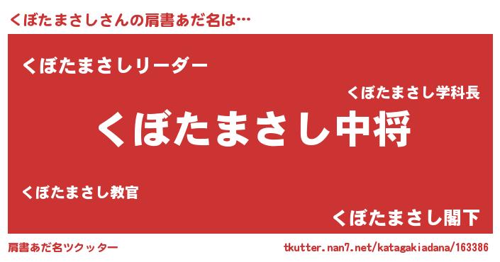 | 男性向けラノベタイトル風あだ名 | 『くぼたまさし~年齢イコール彼女いない歴の魔法使い~』 |