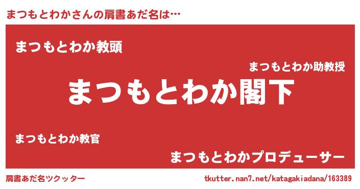 | ヘコむあだ名 | 『まつもとわか(小並感)』『まつふぇ~』 |