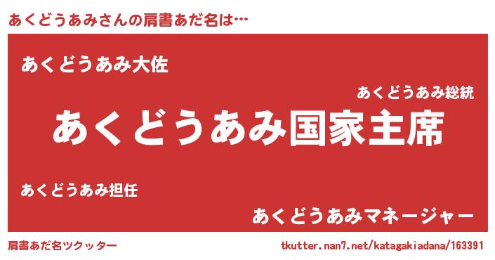 | 可愛いあだ名 | 『あくちー』『あくぷりん』 |