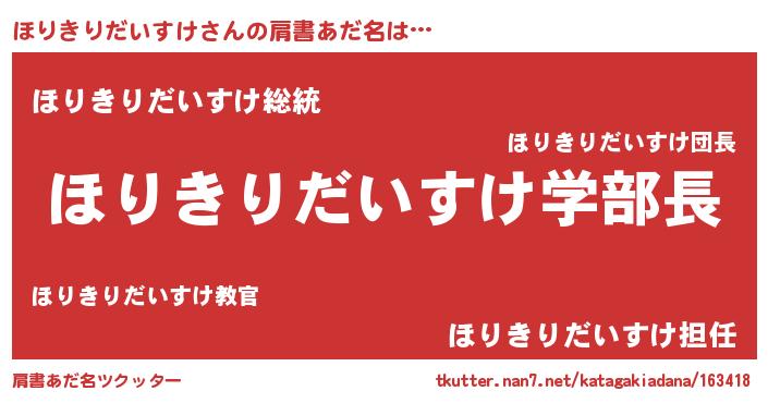 | ヘコむあだ名 | 『ほりきりだいすけ(遠い目)』『ほりっぺ』 |
