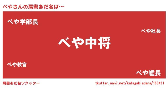 | 女子向けラノベタイトル風あだ名 | 『べやの玉の輿計画!』『死神べやの再婚』 |
