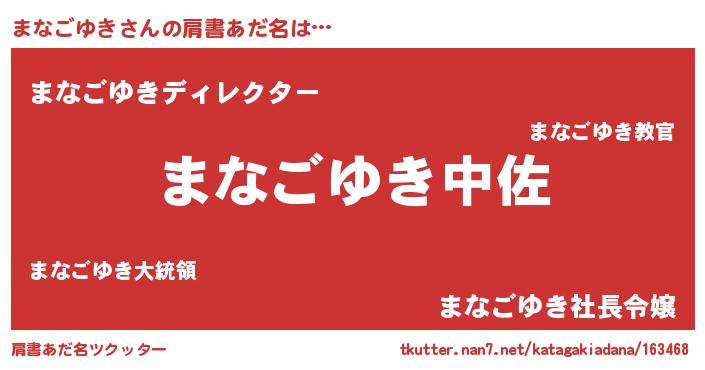 | 胡散臭い通販商品みたいなあだ名 | 『必ず成功するブレスレット…その名も「まなごゆき」』 |