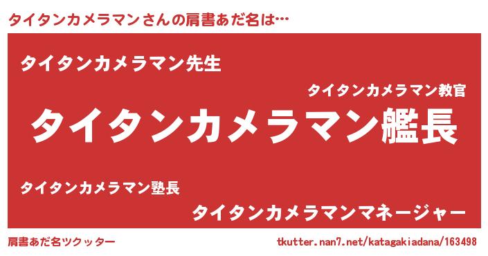 | 胡散臭い通販商品みたいなあだ名 | 『来世でも幸せになれる健康食品…その名も「タイタンカメラマン」』 |