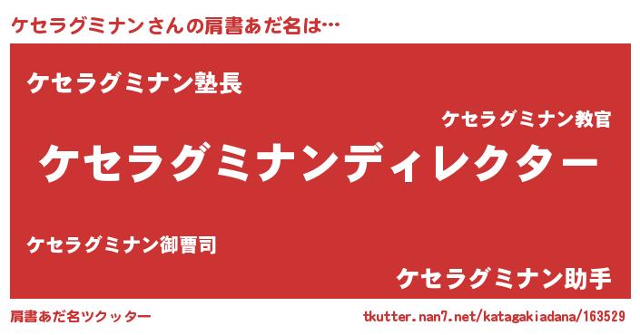 | 意味不明あだ名 | 『とにかく怪しいケセラグミナン』 |