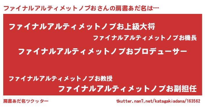 | ヘコむあだ名 | 『ファイナルアルティメットノブお(遠い目)』 |