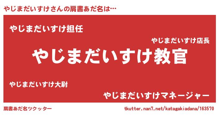 | 男性向けラノベタイトル風あだ名 | 『この素晴らしい世界にやじまだいすけを!』 |