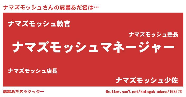 | ポケモン風あだ名 | 『ナマゴンZ』『ナーマイ』 |