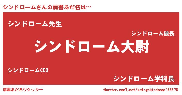 | 胡散臭い通販商品みたいなあだ名 | 『絶対に幸福をもたらす健康食品…その名も「シンドローム」』 |
