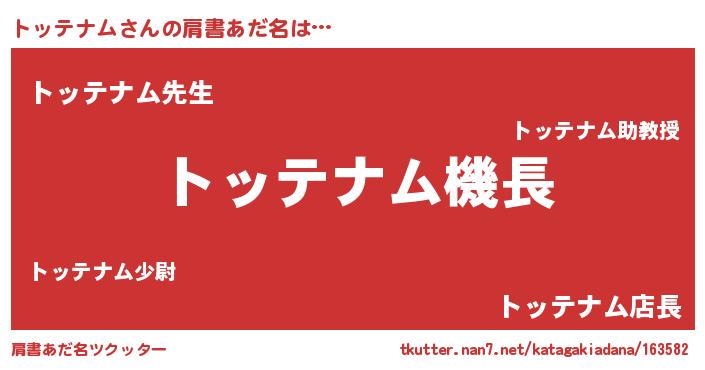 | ヘコむあだ名 | 『トッテナム(苦笑)』『トッにー』 |