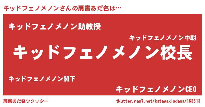 | 意味不明あだ名 | 『永久保存キッドフェノメノン』 |