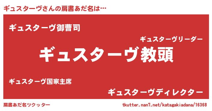 | 意味不明あだ名 | 『永久保存ギュスターヴ』 |