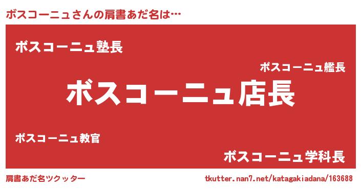 | 男性向けラノベタイトル風あだ名 | 『ボスコーニュの憂鬱』 |